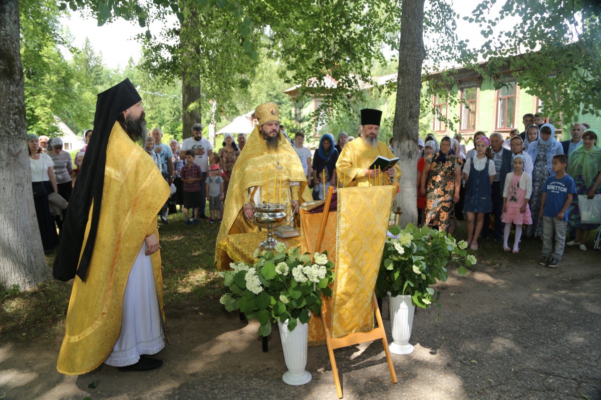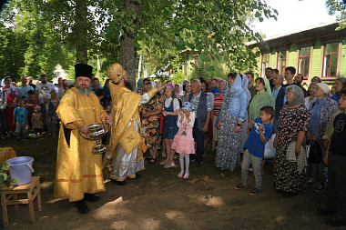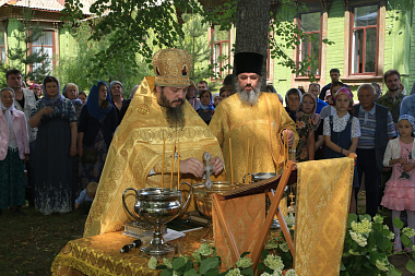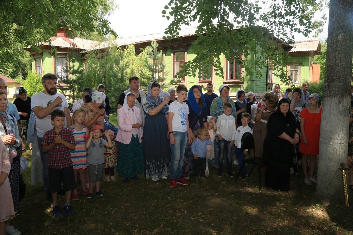 По окончании Литургии крестный ход направился в скит, где был отслужен молебен с водосвятием всем святым.