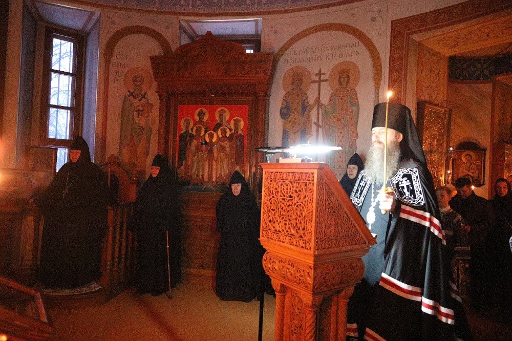 Вечером 28 февраля 2023 года, во вторник первой седмицы Великого поста, по благословению Святейшего Патриарха Московского и всея Руси Кирилла епископ Павлово-Посадский Силуан совершил великое повечерие с чтением Великого покаянного канона прп. Андрея Критского в Борисоглебском Аносином ставропигиальном женском монастыре.