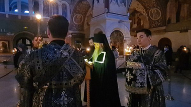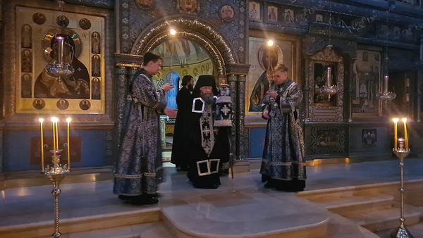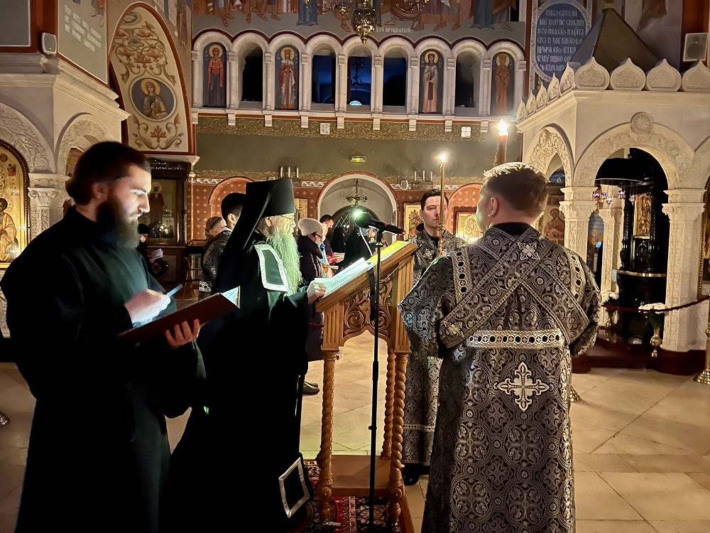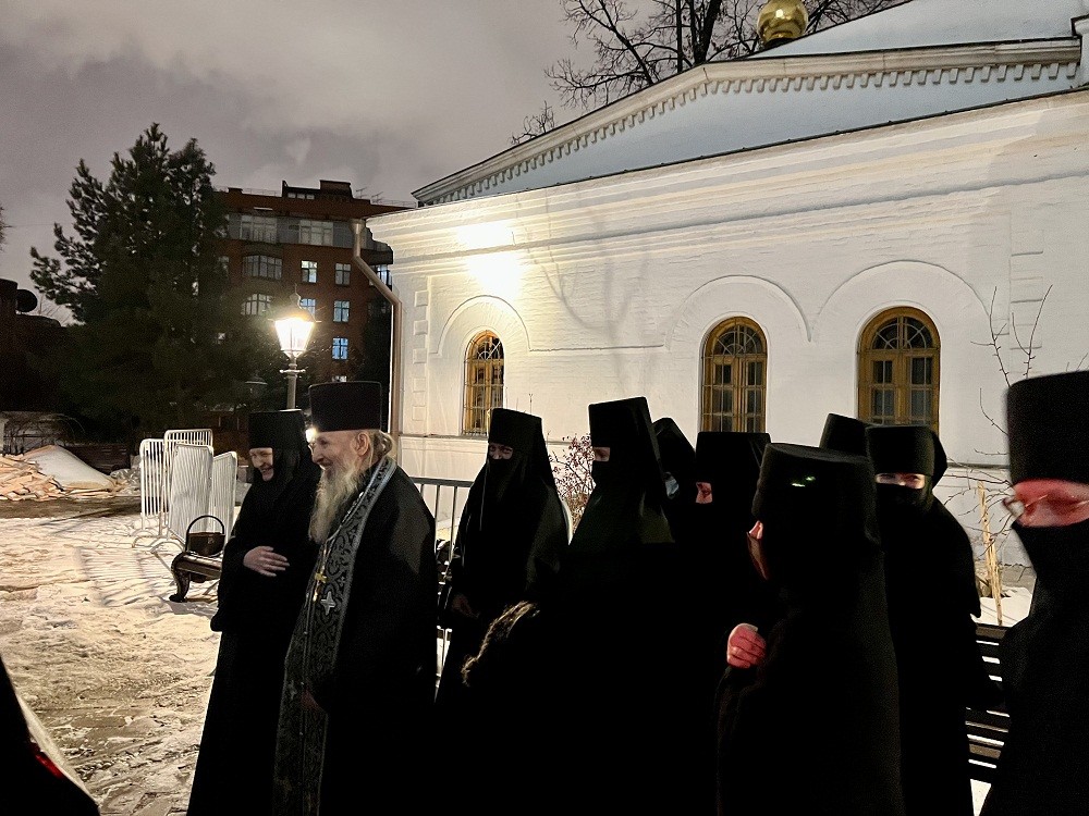 Вечером 8 марта 2022 года, во вторник первой седмицы Великого поста,великое повечерие с чтением Великого покаянного канона прп. Андрея Критского по благословению Святейшего Патриарха Московского и всея Руси Кирилла в Зачатьевском ставропигиальном женском монастыре совершил епископ Солнечногорский Алексий, наместник Данилова ставропигиального мужского монастыря.