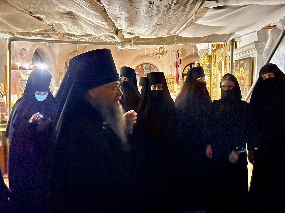 По окончании великого повечерия владыка Алексий обратился к матушке игумении с сестрами и всем собравшимся в храме с кратким словом, напомнив слова преподобного Антония Великого о необходимости приучить себя к тому, чтобы всегда быть готовым сказать: «Прости». Владыка передал благословение Святейшего Патриарха Кирилла и пожелал всем стяжать сердце сокрушенное и смиренное, дабы сподобиться радости Христова Воскресения.