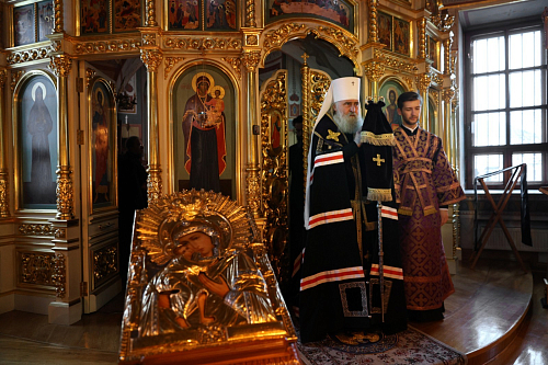 По окончании богослужения митрополит Феогност обратился к собравшимся с проповедью.