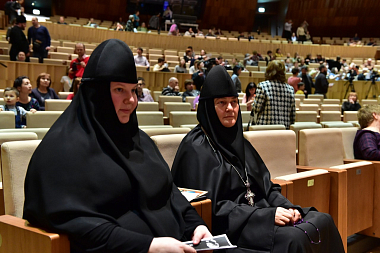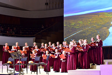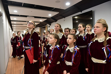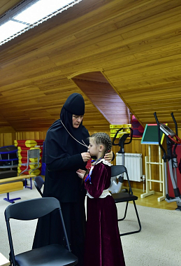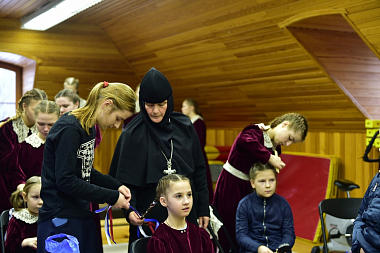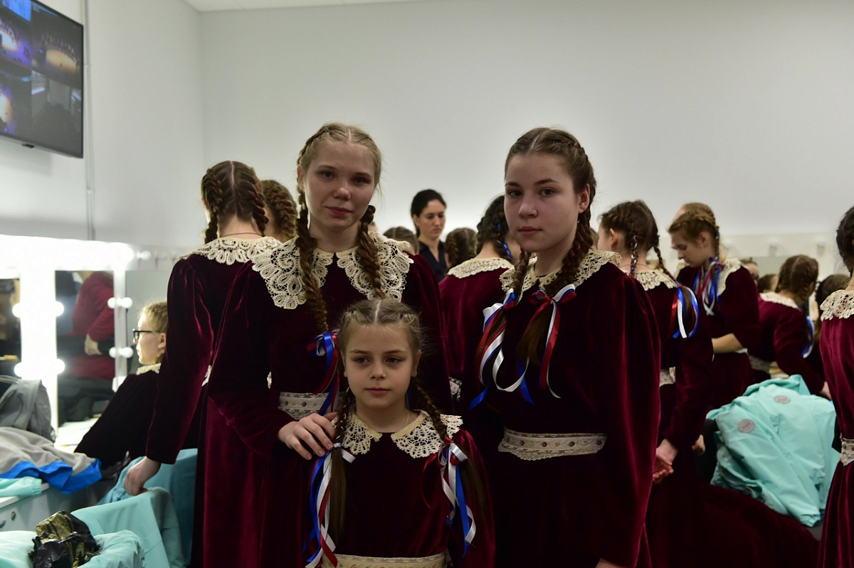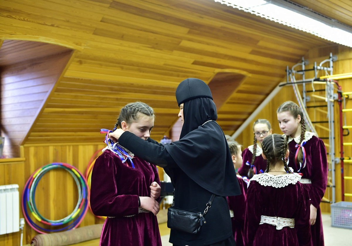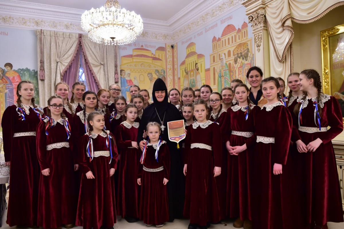 хор приюта Покровского ставропигиального женского монастыря «Матронушкины детки» исполнил произведения: «Гляжу в озера синие» (музыка – И. Дунаевский, слова – М. Матусовский), «Песня о России» (музыка – В. Локтев, слова – О. Высотская);