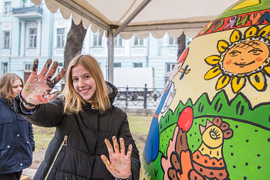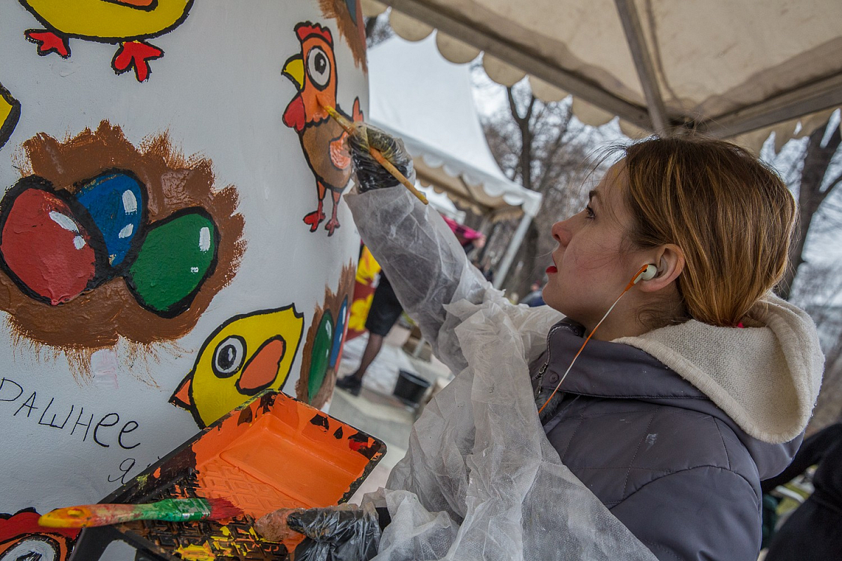 Самым ярким действом Петровского Пасхального фестиваля стал конкурс росписи двухметровых пасхальных яиц. В конкурсе участвовало 20 команд от художественных студий, колледжей и кадетских школ Москвы.
