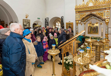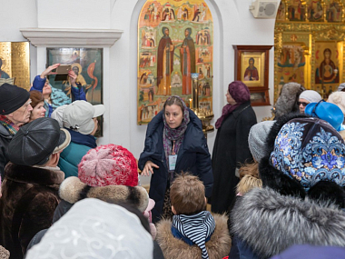 Для гостей была проведена обзорная ознакомительная экскурсия, во время которой посетители имели возможность поклониться святыням обители: чудотворной иконе Божией Матери «Милостивая» и гробнице преподобных Иулиании и Евпраксии, основательниц монастыря.