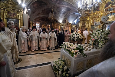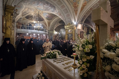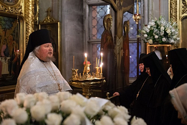 За богослужением среди прочих молились настоятельницы ряда ставропигиальных женских монастырей, в частности Богородице-Рождественского – член Коллегии СОММ игумения Викторина (Перминова), Борисоглебского Аносина – игумения Мария (Солодовникова), Алексеевского – руководитель Юридической службы Московской Патриархии игумения Ксения (Чернега).
