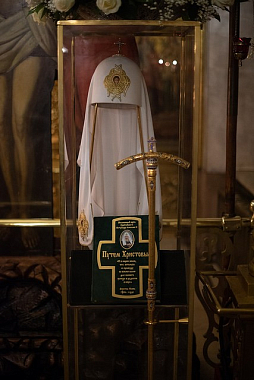 По окончании Литургии архиерей отслужил панихиду у места погребения Святейшего Патриарха Алексия II.