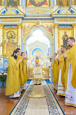 В Успенском соборе обители Его Высокопреосвященству сослужили насельник монастыря архимандрит Борис (Пирог), доцент Минской духовной семинарии протоиерей Геннадий Повный, преподаватель семинарии иерей Евгений Солонков, заведующий канцелярией иерей Игорь Бабанов, братия обители в священном сане и духовенство Новогрудской епархии.