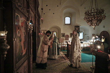 Его Высокопреосвященству сослужили клирики подворья в священном сане.