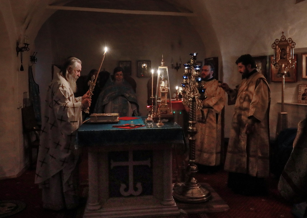 По окончании Литургии духовенство совершило славление прп. Аристоклию Афонскому перед его честными мощами.