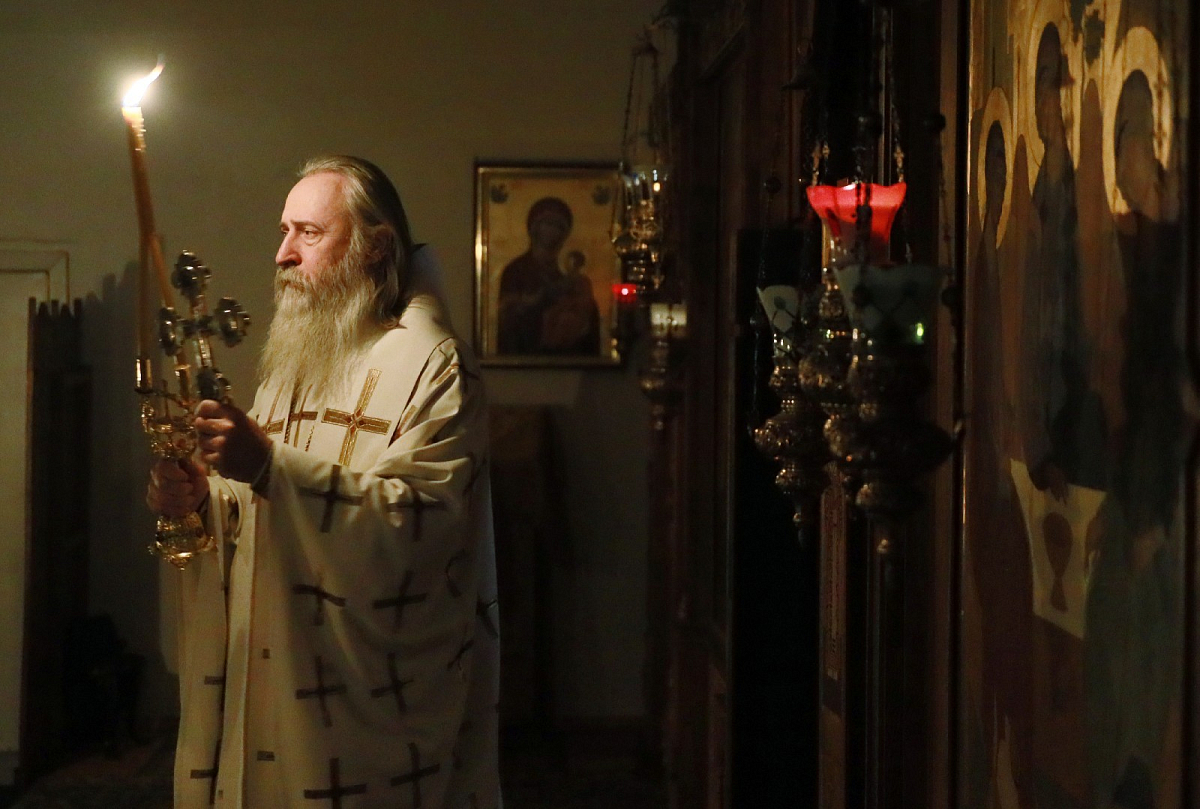 Церковные песнопения греческим распевом исполнил братский хор Афонского подворья.