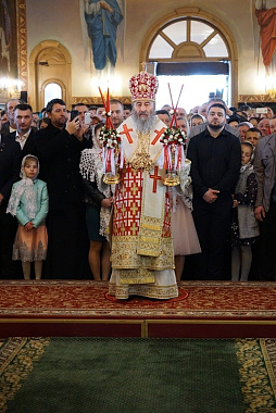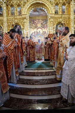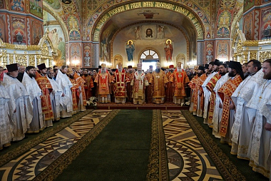 Его Блаженству сослужили митрополит Черновицкий и Буковинский Мелетий, наместник обители архиепископ Банченский Лонгин, епископ Шепетовский и Славутский Евсевий, епископ Хотинский Вениамин, духовенство монастыря.