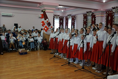 Воспитанники детских домов исполнили для гостей пасхальные песнопения.