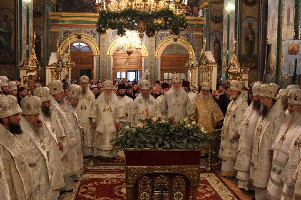 Его Блаженству сослужили 17 архиереев Украинской Православной Церкви и многочисленные священнослужители, прибывшие поздравить юбиляра.