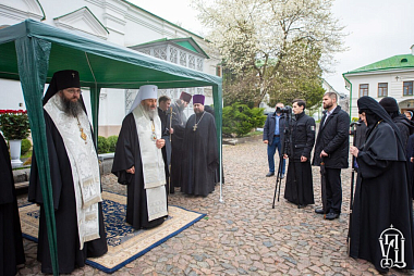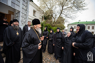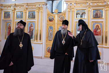 По окончании заупокойного богослужения Блаженнейший митрополит Онуфрий поклонился святыням обители и ознакомился с ходом ремонтно-реставрационных работ, которые ведутся в монастыре.