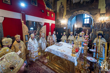 В завершение богослужения перед иконой праздника был отслужен молебен с исполнением тропаря и кондака Рождества Христова, после чего Блаженнейший митрополит Онуфрий поздравил насельников, прихожан и паломников обители с праздником и благословил всех присутствовавших.