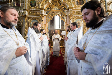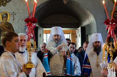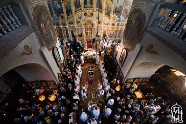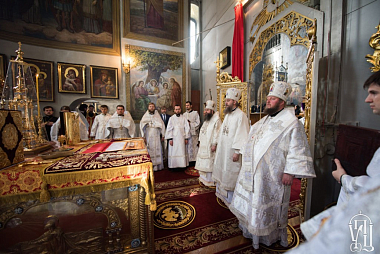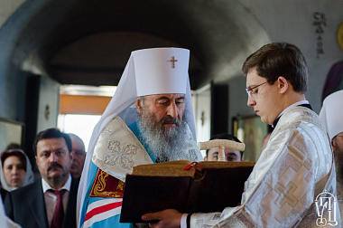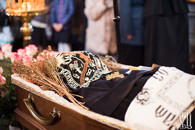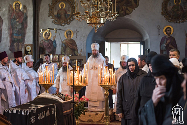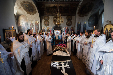Перед чином отпевания по благословению Предстоятеля Украинской Православной Церкви управляющий делами Украинской Православной Церкви митрополит Бориспольский и Броварской Антоний совершил Божественную литургию в главном храме Флоровского монастыря в сослужении архиепископа Нежинского и Прилукского Климента, епископа Золотоношского Иоанна, духовенства украинской столицы.