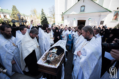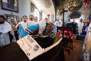 По окончании Литургии Блажннейший владыка возглавил чин отпевания. Его Блаженству сослужили наместник Киево-Печерской лавры митрополит Вышгородский и Чернобыльский Павел, управляющий делами Украинской Православной Церкви митрополит Бориспольский и Броварской Антоний, митрополит Белоцерковский и Богуславский Августин, архиепископ Нежинский и Прилукский Климент, епископ Фастовский Дамиан, епископ Золотоношский Иоанн, духовенство.