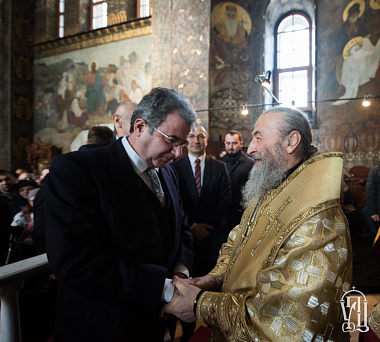 По окончании богослужения в резиденции Предстоятеля Украинской Православной Церкви в Киево-Печерской лавре состоялась встреча Его Блаженства с представителями дипломатического корпуса.