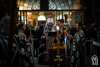 Вечером этого же дня в Трапезном храме преподобных Антония и Феодосия Свято-Успенской Киево-Печерской Лавры, архипастырь в сослужении духовенства обители совершил чинопоследование с акафистом Божественным Страстям Христовым.