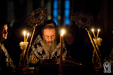 Накануне Блаженнейший владыка возглавил всенощное бдение в этом же храме.
