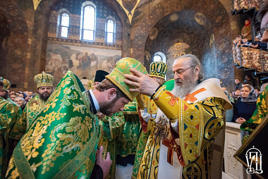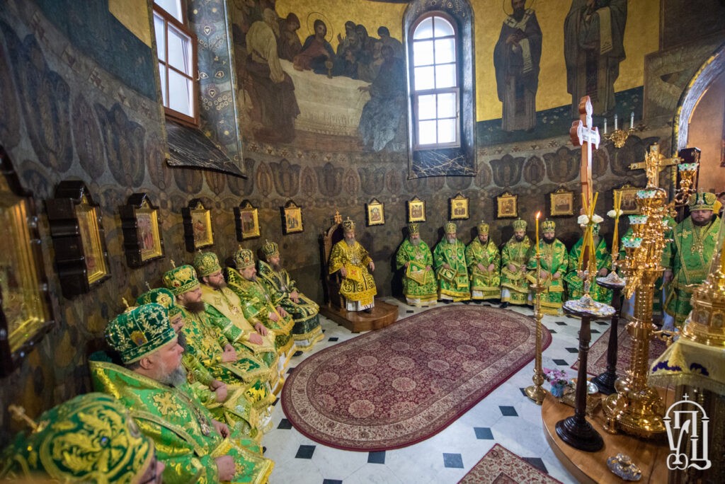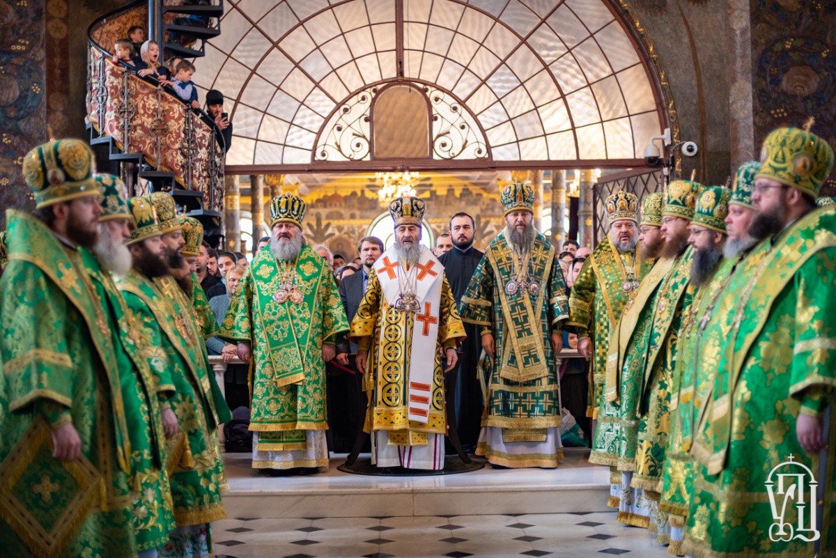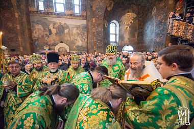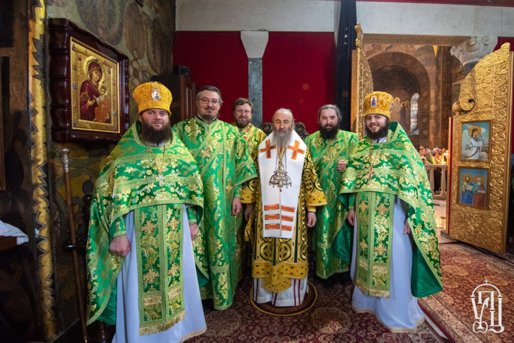Его Блаженству сослужили наместник обители митрополит Вышгородский и Чернобыльский Павел, управляющий делами Украинской Православной Церкви митрополит Бориспольский и Броварской Антоний, митрополит Могилев-Подольский и Шаргородский Агапит, архиепископ Гурий (Кузьменко), архиепископ Роменский и Бурынский Иосиф, архиепископ Северодонецкий и Старобельский Никодим, архиепископ Львовский и Галицкий Филарет, архиепископ Боярский Феодосий, архиепископ Конотопский и Глуховский Роман, архиепископ Нежинский и Прилукский Климент, архиепископ Фастовский Дамиан, епископ Васильковский Николай, епископ Барышевский Виктор, епископ Белогородский Сильвестр, духовенство монастыря.