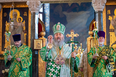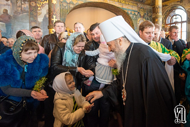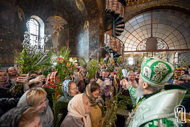В завершение митрополит Онуфрий освятил ветви и окропил освященной водой многочисленных верующих, молившихся за праздничным богослужением.