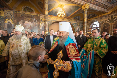 Его Блаженству сослужили наместник Лавры митрополит Вышгородский и Чернобыльский Павел, архиепископ Гурий (Кузьменко), архиепископ Бучанский Пантелеимон, епископ Шепетовский и Славутский Евсевий, духовенство лавры, гости в священном сане.