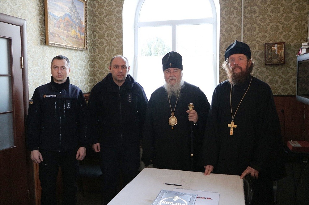 В заседании под председательством священноархимандрита монастыря митрополита Днепропетровского и Павлоградского Иринея приняли участие наместник обители архимандрит Досифей (Савелов), начальник Новомосковского районного управления Государственной службы Украины по чрезвычайным ситуациям, полковник службы гражданской защиты Олег Гузиенко, а также братия обители.
