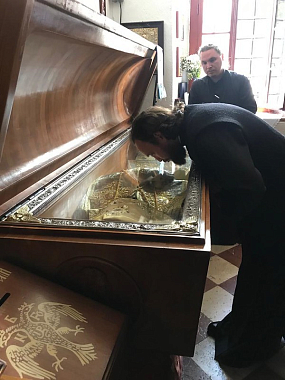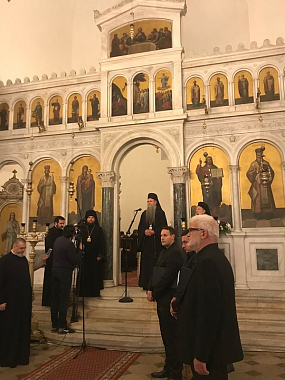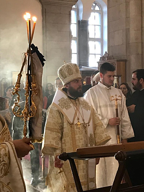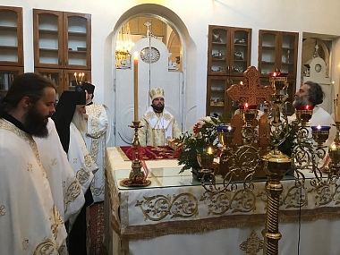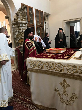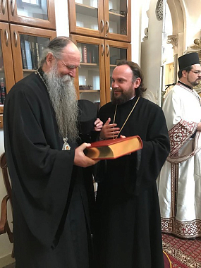 В проповеди митрополит Амфилохий поприветствовал гостей, в том числе епископа Арсения, и передал памятные подарки митрополиту Льву и епископу Арсению.