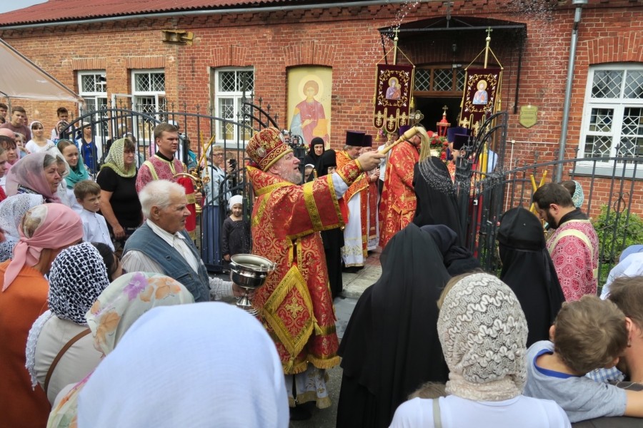 По отпусте Божественной литургии епископ Игнатий и сослужащее ему духовенство при участии игумений и сестер монастырей совместно с многочисленными паломниками совершили крестный ход вокруг храма, после чего последовал молебен великомученику и целителю Пантелеимону.