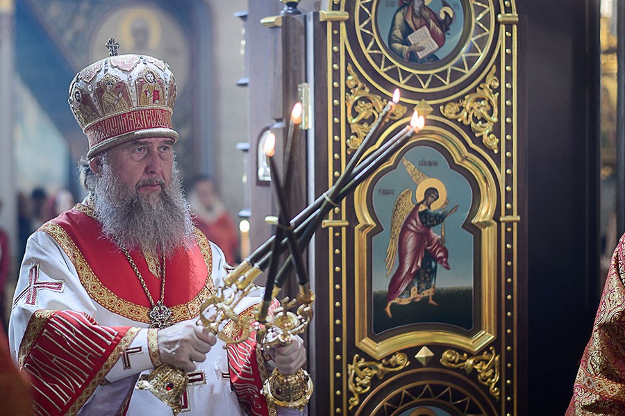 На сугубой ектении были вознесены прошения о единстве святого православия и сохранении Церкви Христовой от разделений и расколов и возглашалось особое прошение об избавлении Казахстана от морового поветрия. Архипастырь прочитал молитву об избавлении Казахстана от губительной эпидемии.