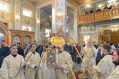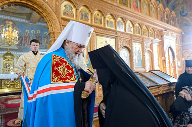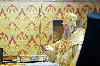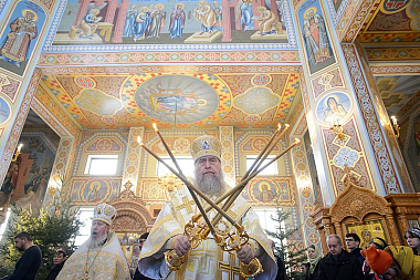 На сугубой ектении возглашались прошения о единстве святого православия. Глава Казахстанского митрополичьего округа вознес молитву о мире и преодолении междоусобной брани на Украине.