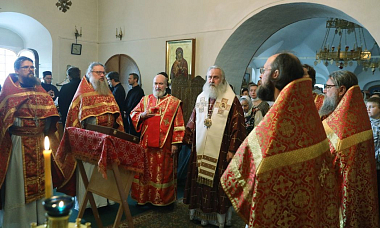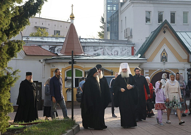 Его Высокопреосвященству сослужили настоятель Афонского подворья иеромонах Никита (Смернягин), клирики подворья в священном сане.