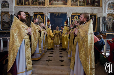 Его Блаженству сослужили: наместник обители митрополит Вышгородский и Чернобыльский Павел; управляющий делами Украинской Православной Церкви митрополит Бориспольский и Броварской Антоний; архиепископы Гурий (Кузьменко), Бучанский Пантелеимон, Макаровский Иларий и братия монастыря в священном сане.