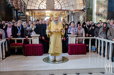 После чтения Евангелия Предстоятель Украинской Православной Церкви обратился к многочисленной пастве с проповедью. Блаженнейший владыка рассказал о борьбе Церкви с ересями в период Вселенских Соборов и установлении праздника Торжества Православия. «Пусть Господь поможет нам мужественно хранить чистоту православной веры, как мы ее восприняли от предков», – пожелал Блаженнейший владыка.