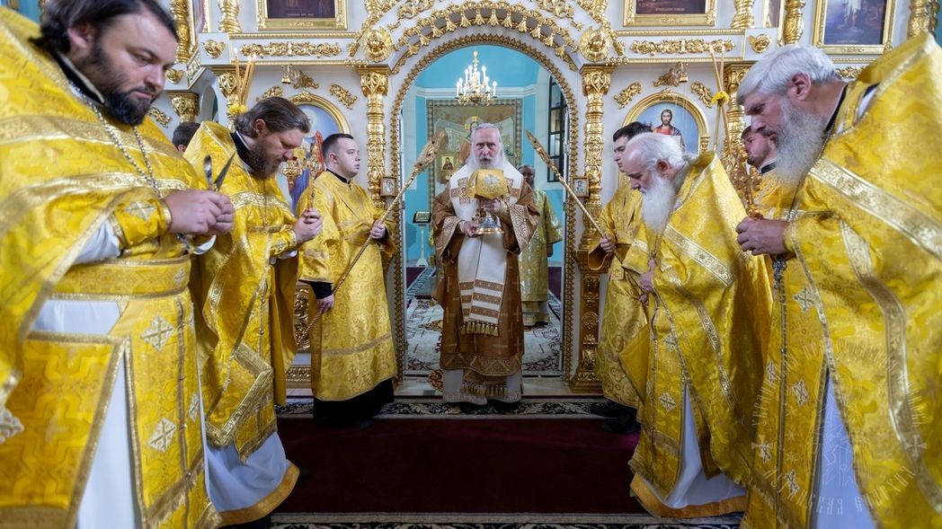 За Литургией Преосвященным архипастырям сослужил секретарь епархии прот. Андрей Зозуля, духовенство кафедрального собора, а также священнослужители, сопровождающие митрополита Феогноста в его рабочей поездке.