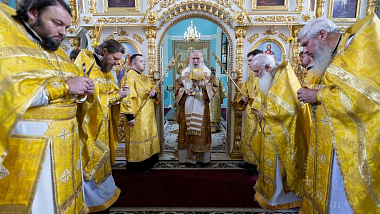 После сугубой ектении, владыки вознесли молитву о мире и умножении любви среди народа Отечества нашего и молитву об исцелении болящих.