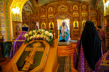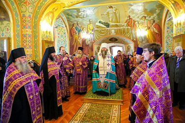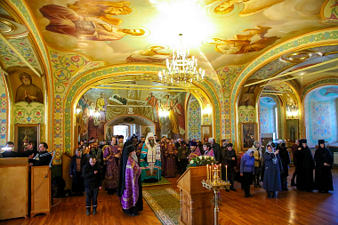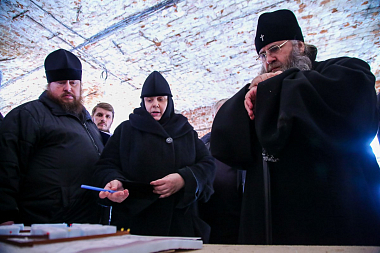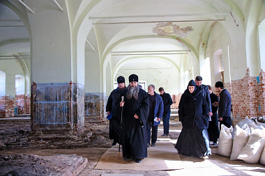 Перед началом осмотра митрополит Георгий совершил в Благовещенской церкви Спасо-Преображенского мужского монастыря молебен Господу нашему Иисусу Христу.