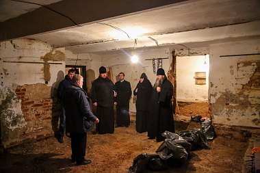 По окончании богослужения владыка Георгий посетил архиерейское подворье возрождающегося Новодевичьего во имя Алексия, человека Божия, монастыря.
