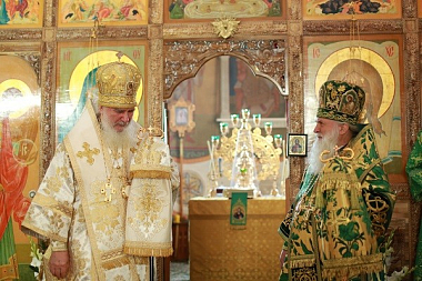 Архиереям сослужили заместитель председателя Издательского Совета иеромонах Макарий (Комогоров), духовенство обители.