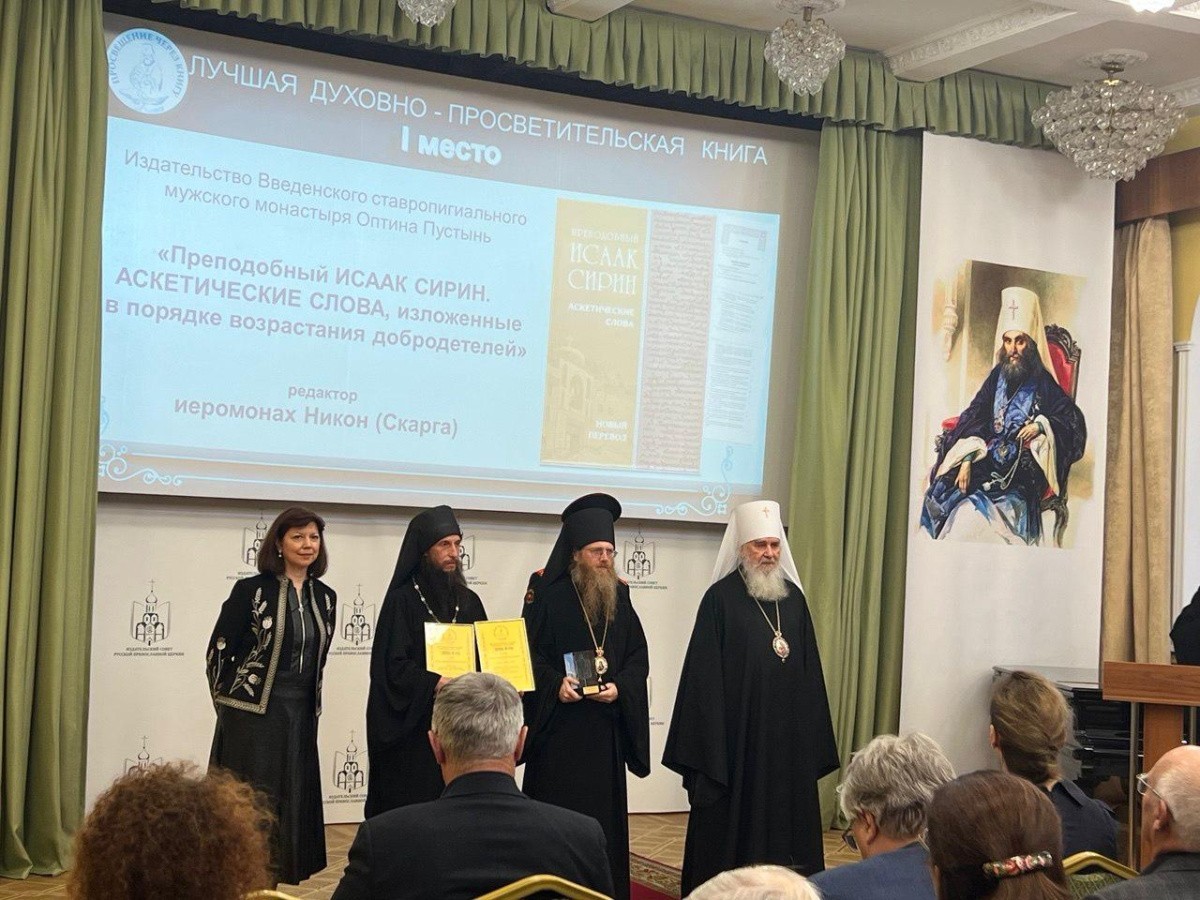 1 место. Издательство Введенского ставропигиального мужского монастыря. Редактор иеромонах Никон (Скарга) «Преподобный Исаак Сирин. Аскетические слова, изложенные в порядке возрастания добродетелей».