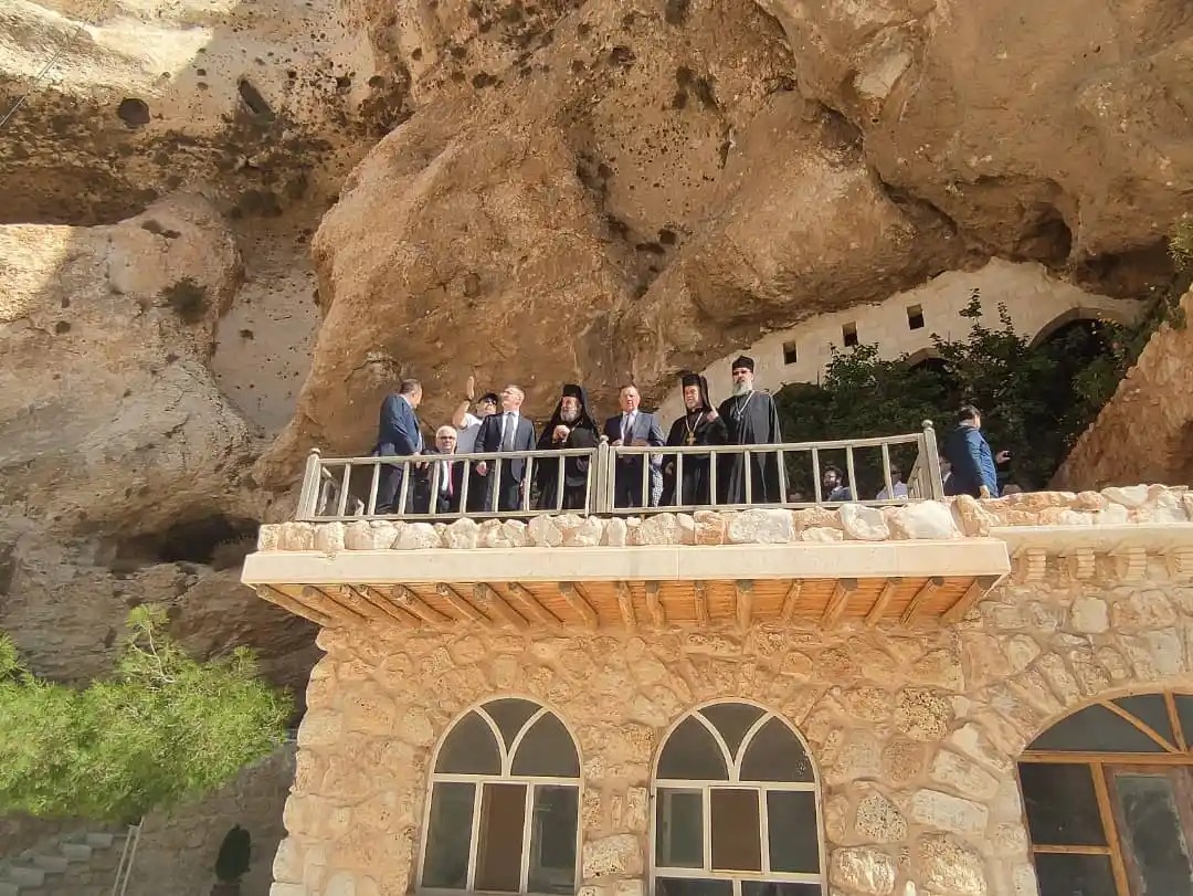У врат обители российскую делегацию встречали: викарий Предстоятеля Антиохийской Православной Церкви епископ Ларисский Моисей, архимандрит Матфей (Рузук), игумения монастыря Пелагея (Сейаф).