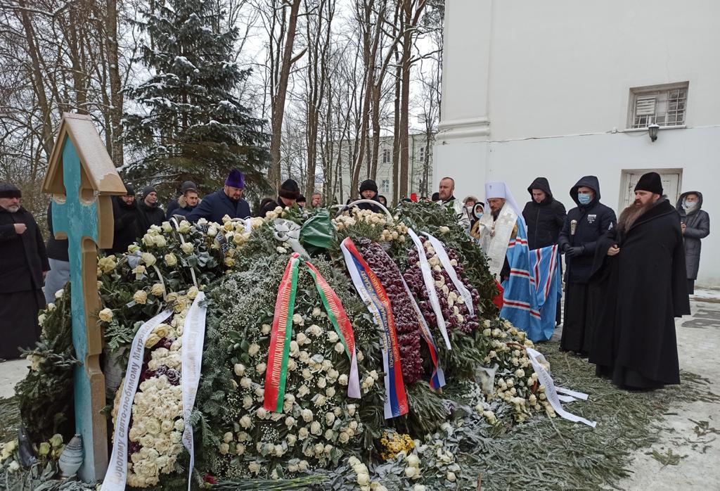 На малом братском кладбище за алтарем Крестовоздвиженского храма Жировичской обители митрополит Вениамин совершил литию на могиле новопреставленного архипастыря.