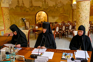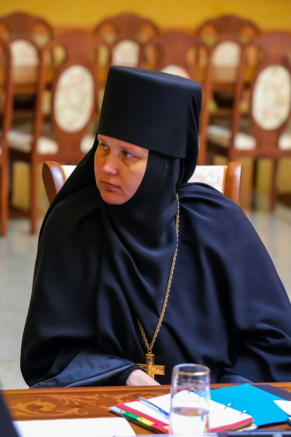 Доклад настоятельницы Богородице-Рождественского ставропигиального монастыря игумении Викторины (Перминовой) был посвящен подготовке документа «Практические аспекты принятия в монастырь и духовное окормление молодых послушников».