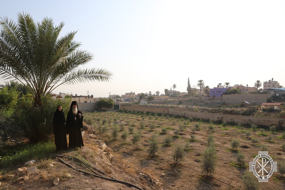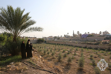 По окончании богослужения архимандрит Александр осмотрел оливковый сад, посаженный на подворье в декабре 2019 г., и ведущиеся на подворье хозяйственные работы.
