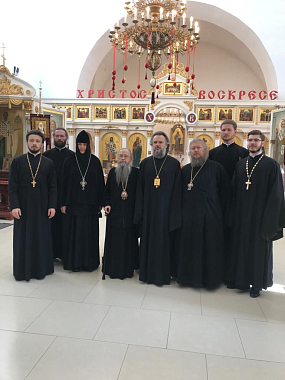 В Николаевском Клобуковом женском монастыре митрополит Амвросий встретил гостей: епископа Солнечногорского Алексия и епископа Тарского и Тюкалинского Петра. Игумения Варвара провела для гостей экскурсию по территорию Клобукова женского монастыря, рассказала про главные монастырские святыни.
