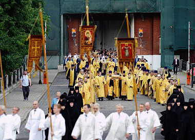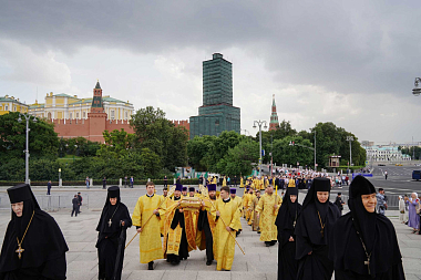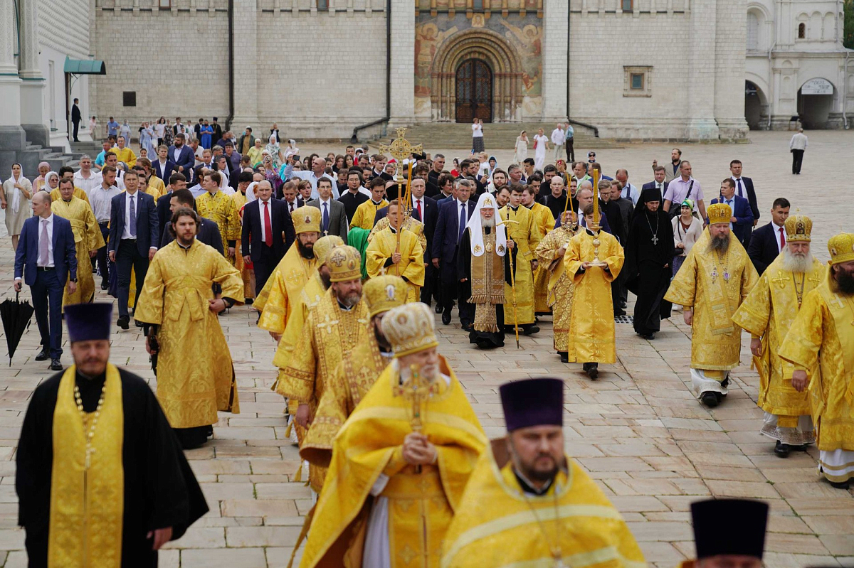В крестном ходе приняли участие полномочный представитель Президента РФ в Центральном федеральном округе И.О. Щеголев, руководитель Департамента национальной политики, межрегиональных связей и туризма г. Москвы В.И. Сучков, архиереи и духовенство, сослужившие Его Святейшеству за Литургией, все участники богослужения в Патриаршем Успенском соборе.