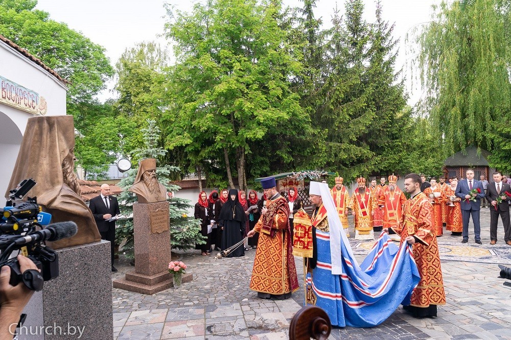 Перед началом Литургии на территории обители состоялось открытие и освящения бюста митрополиту Литовскому и Виленскому Иосифу (Семашко). На табличке постамента начертаны две символичные фразы – «Отторгнуты насилием (1596)» и «Воссоединены с любовью (1839)» – отсылка к двум важным событиям, изменившим духовную жизнь Белоруссии.