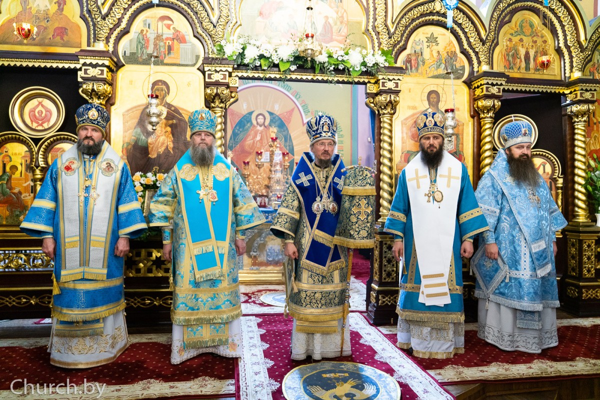 За Божественной литургией Его Высокопреосвященству сослужили митрополит Волгоградский и Камышинский Феодор, архиепископ Новогрудский и Слонимский Гурий, архиепископ Гродненский и Волковысский Антоний, епископ Слуцкий и Солигорский Евсевий, председатель Синодального отдела по сотрудничеству со светскими учреждениями образования Белорусской Православной Церкви протоиерей Феодор Повный, благочинный 3-го Минского городского округа, настоятель храма благоверного князя Александра Невского г. Минска протоиерей Николай Коржич, ответственный секретарь Управления делами Белорусской Православной Церкви протоиерей Андрей Волков, секретарь Гродненской епархии протоиерей Николай Лабынько, секретарь Новогрудской епархии протоиерей Димитрий Семуха, клирики монастыря, приглашенное духовенство. Диаконский чин возглавил протодиакон Владимир Назаров.