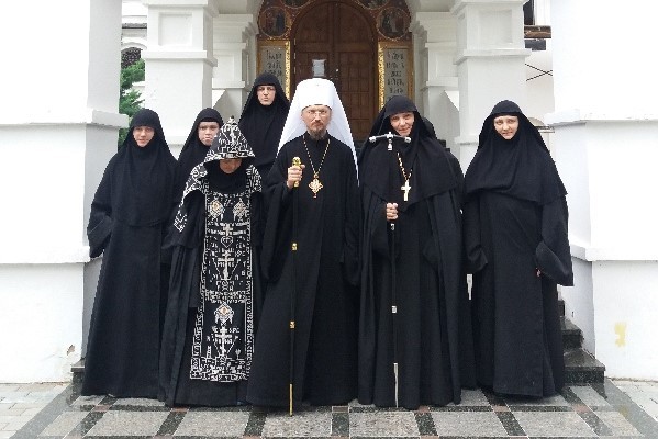 Далее Патриарший экзарх обратился к настоятельнице со словом назидания и вручил ей игуменский посох.